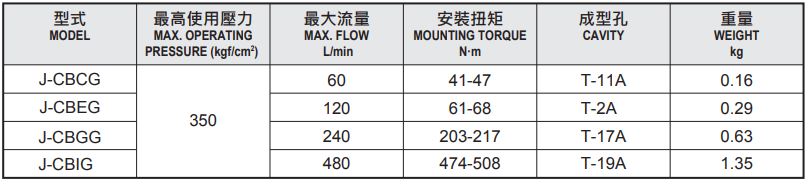 J-CB*G Standard capacity counterbalance valve (4.5 : 1 pilot ratio)